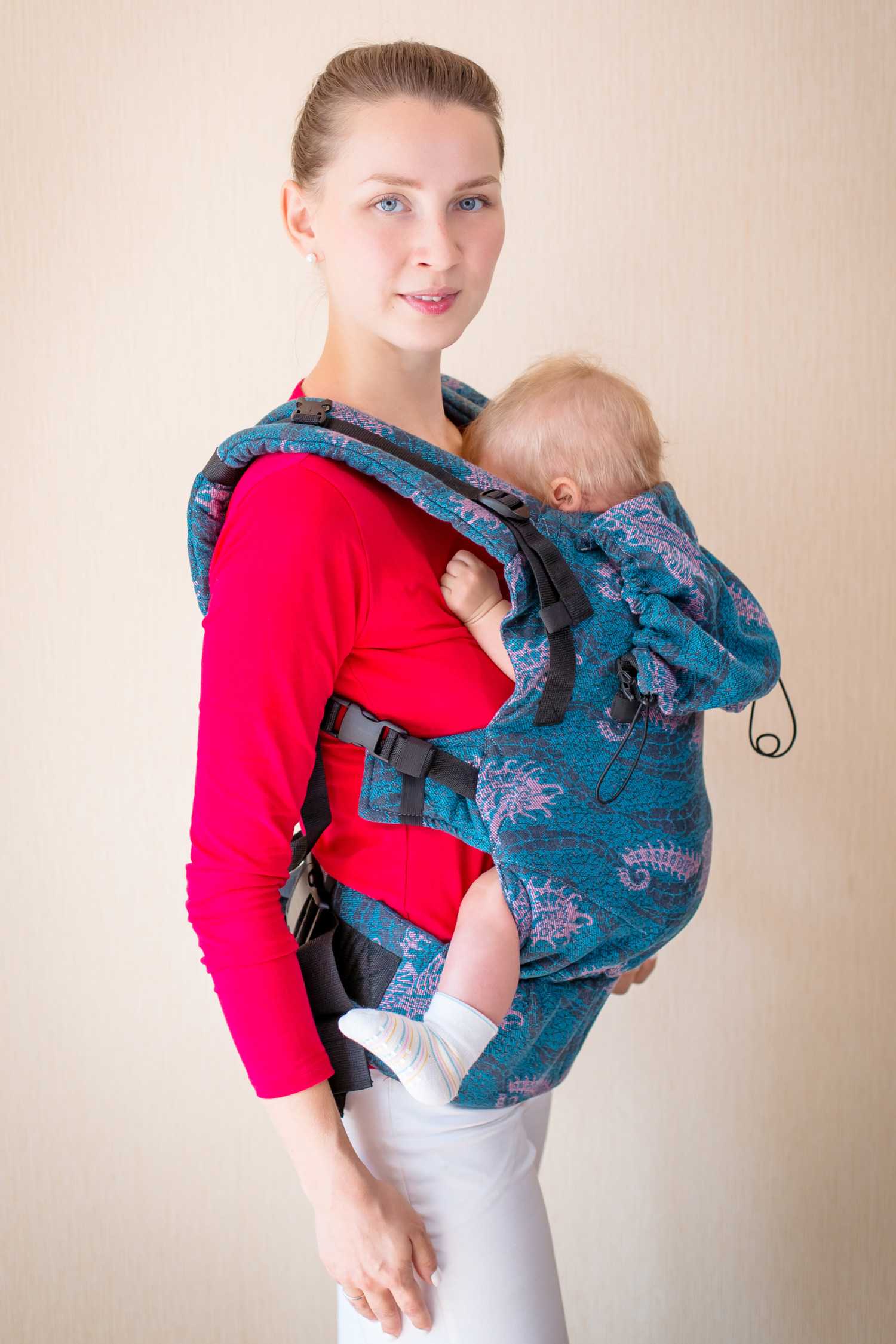 - Делит нагрузку между спиной и бедрами, так что маме не придется сгибаться под тяжестью малыша.