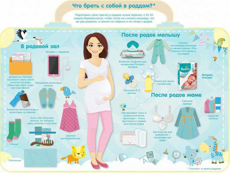 Все вещи в этом случае можно условно разделить на 2 пакета: для будущей матери и для новорожденного. Их рекомендуется брать с собой, при условии, что беременную женщину не кладут в больницу заранее.