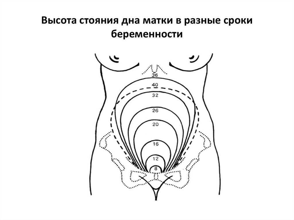 - По высоте стояния дна матки. Метод имеет ориентировочное значение, используется для оценки развития плода гинекологом при осмотре