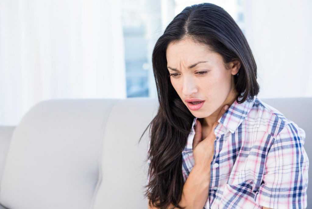 - затруднение дыхания, давящие боли в груди, ощущение кома в горле.