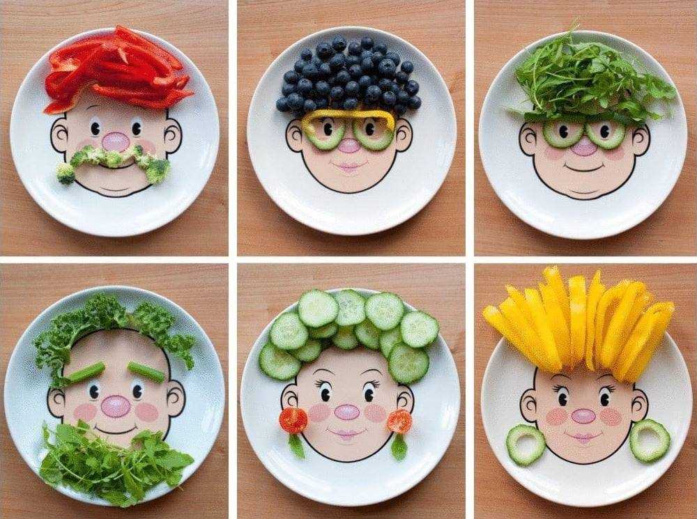 Овощи и фрукты, разрезанные на небольшие фигурки, будут привлекательными для детей. Делайте овощные полоски или выкладывайте на тарелке разные интересные фигуры (бабочки, цветок, пальму, краба и тому подобное). Находите и рассматривайте яркие рисунки, на которых изображены дети, которые с удовольствием смакуют овощные блюда.