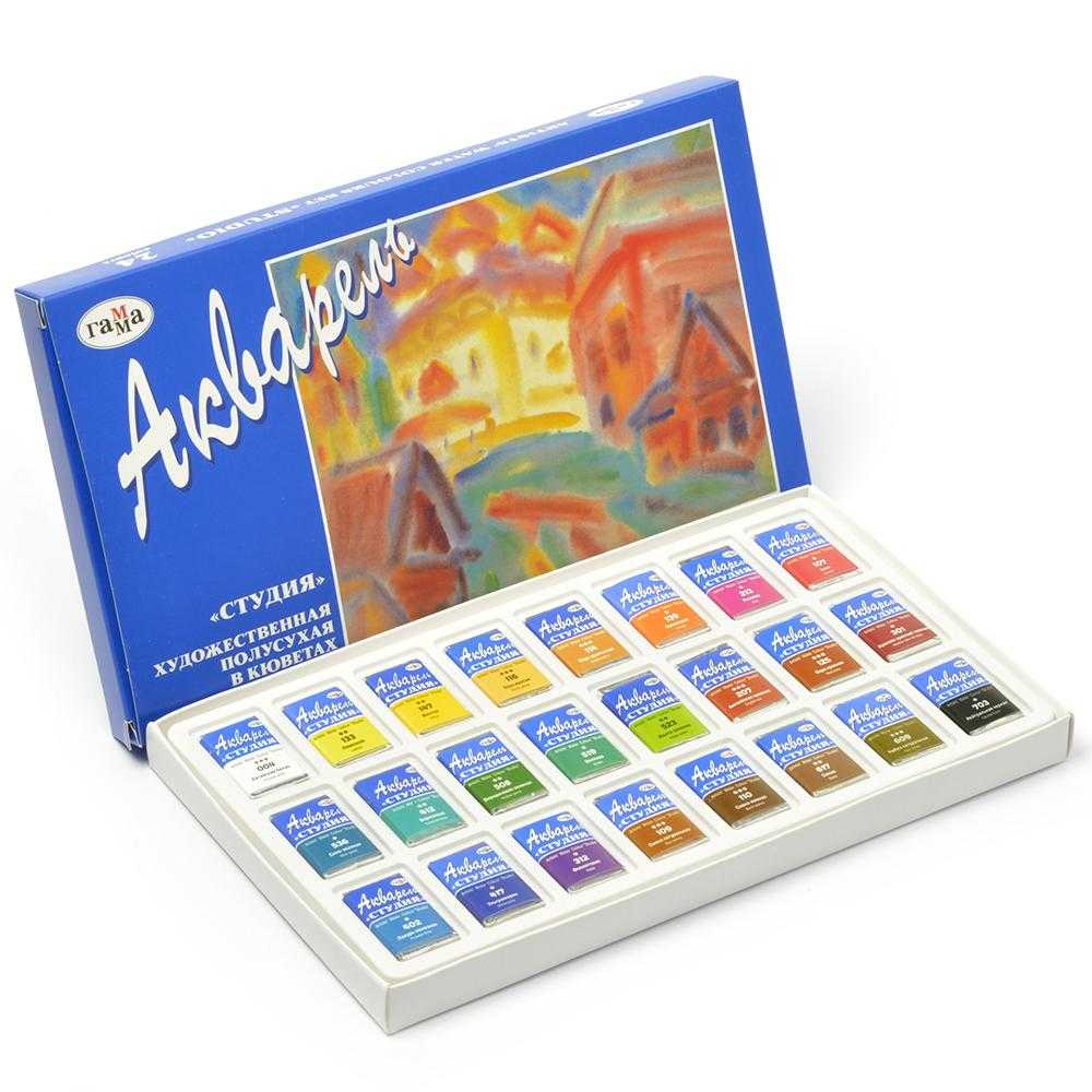 Акварели Гамма больше подойдут ребятам старшего возраста, которые изучают профессиональное рисование красками. Для детей они представлены в небольшой коробке, в палитре 24 разных оттенка среди которых преобладают яркие цвета. Довольно быстро сохнут на бумаге, для получения очень светлых оттенков требуют большого количества воды. Также, Гамма легко набирается на кисточку, плюс акварель не выгорает до окончания срока годности даже при открытом кювете. Кстати, покупатели отмечают положительно тот момент, что кюветы можно приобрести по отдельности, если возникнет такая необходимость. Производитель Гаммы достаточно популярен, поэтому ее можно купить в любом художественном магазине.