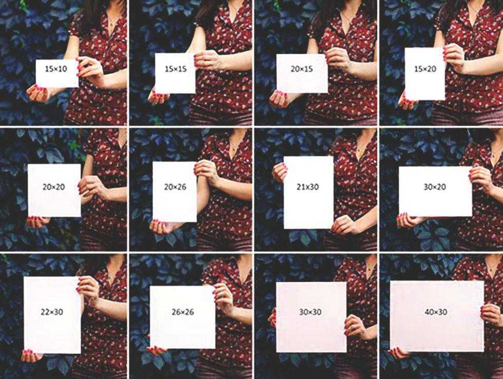 Фотобумага 10×15 см примерно соответствует листу обычной бумаги А6, 15×21 см — А5, 30×30 — А4, 30×40 и 30×45 — А3, 30×60 — А2.