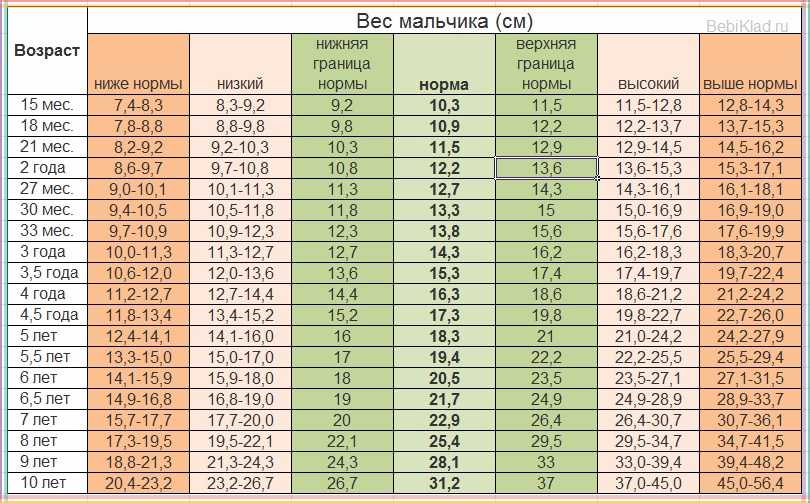 Нормы веса четырёхлетних детей