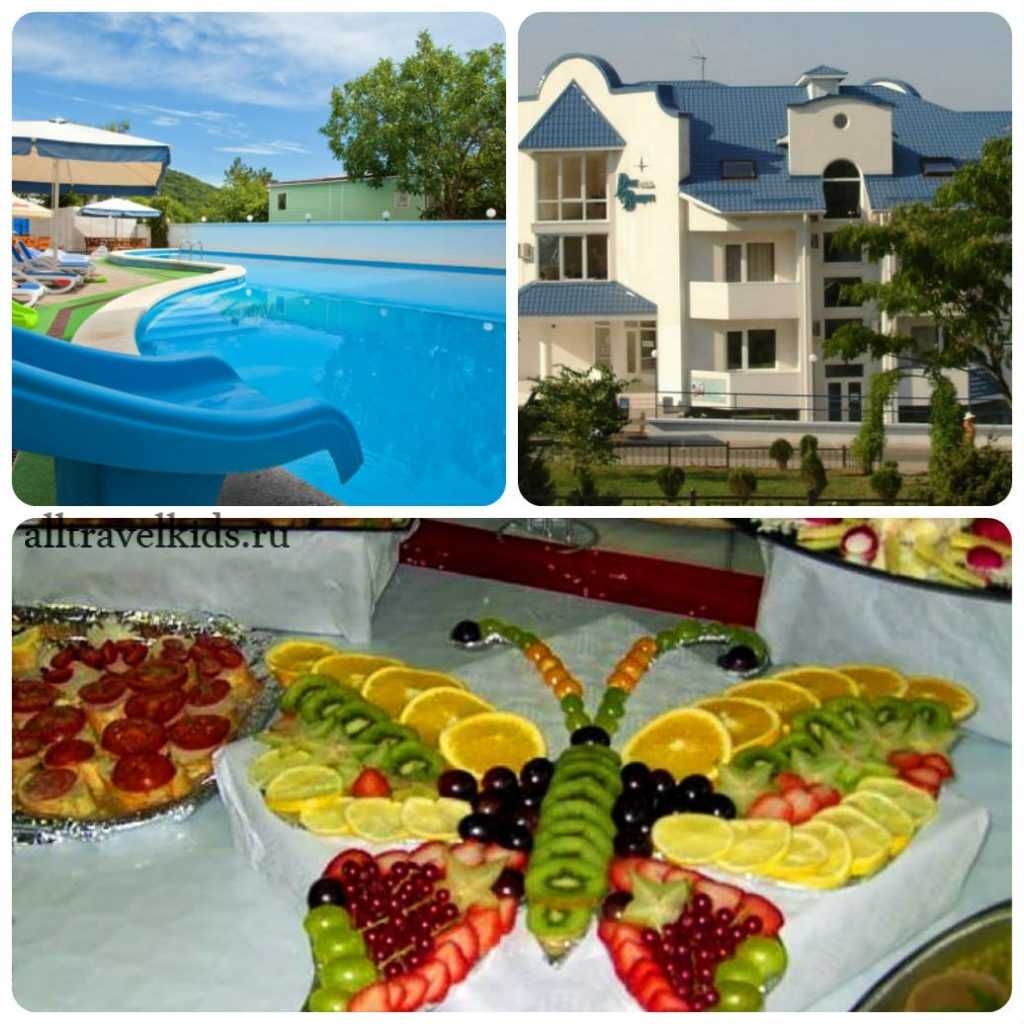- ГРК «Альбатрос». Детский комплекс с большим количеством развлечений. Имеется собственный выход к пляжу. Кафе, бассейны, детская площадка и городок, аниматоры, бесплатный Wi-Fi. Дети от 0 до 5 лет отдыхают бесплатно. Цена: от 3800 рублей в сутки. Оценка: 8,9.