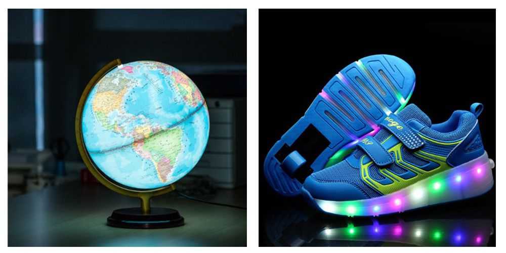 - светящиеся кроссовки с выдвижными роликами;