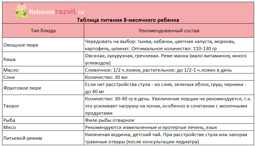 Примерное меню для ребенка 8 месяцев, рекомендованное Союзом педиатров России: