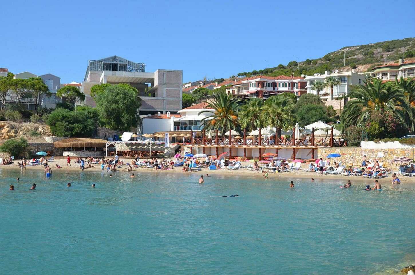 Находится на курорте Чешме. Это место особенно понравится любителям активного времяпровождения. Но сюда также приезжают и те, кто просто хочет покупаться в море, позагорать на белоснежном песке. Это место также облюбовано семейными парами с детьми. Спуск в воду пологий, глубина начинается в 50 метрах от пляжа, поэтому за безопасность малышей можно не волноваться.