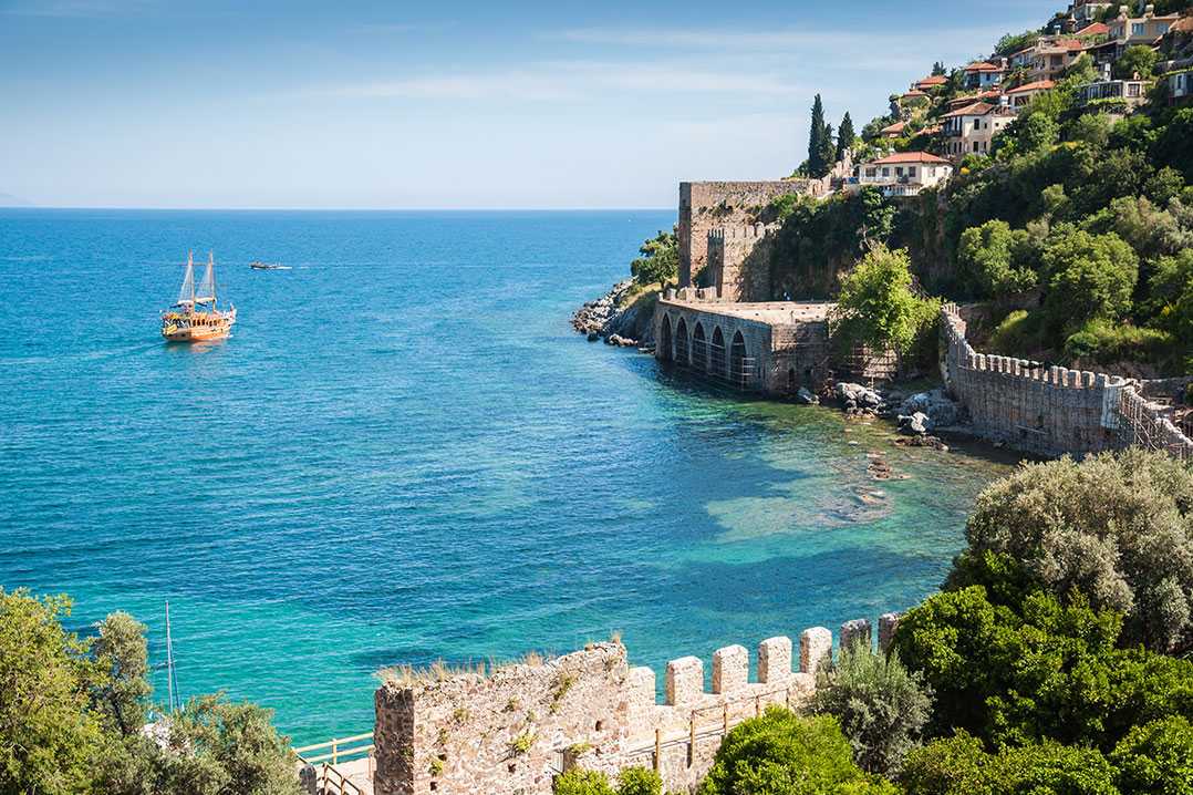 - Как добраться: перелёт из Москвы — около четырёх часов до аэропорта Антальи (стоимость — от 10 000 руб., далее переезд 125 км — сначала на автобусе № 600 до Центрального автовокзала Антальи, а затем на междугороднем автобусе до Аланьи) либо перелёт до аэропорта Газипаша-Аланья (стоимость — от 20 000 руб., далее переезд 40 км).