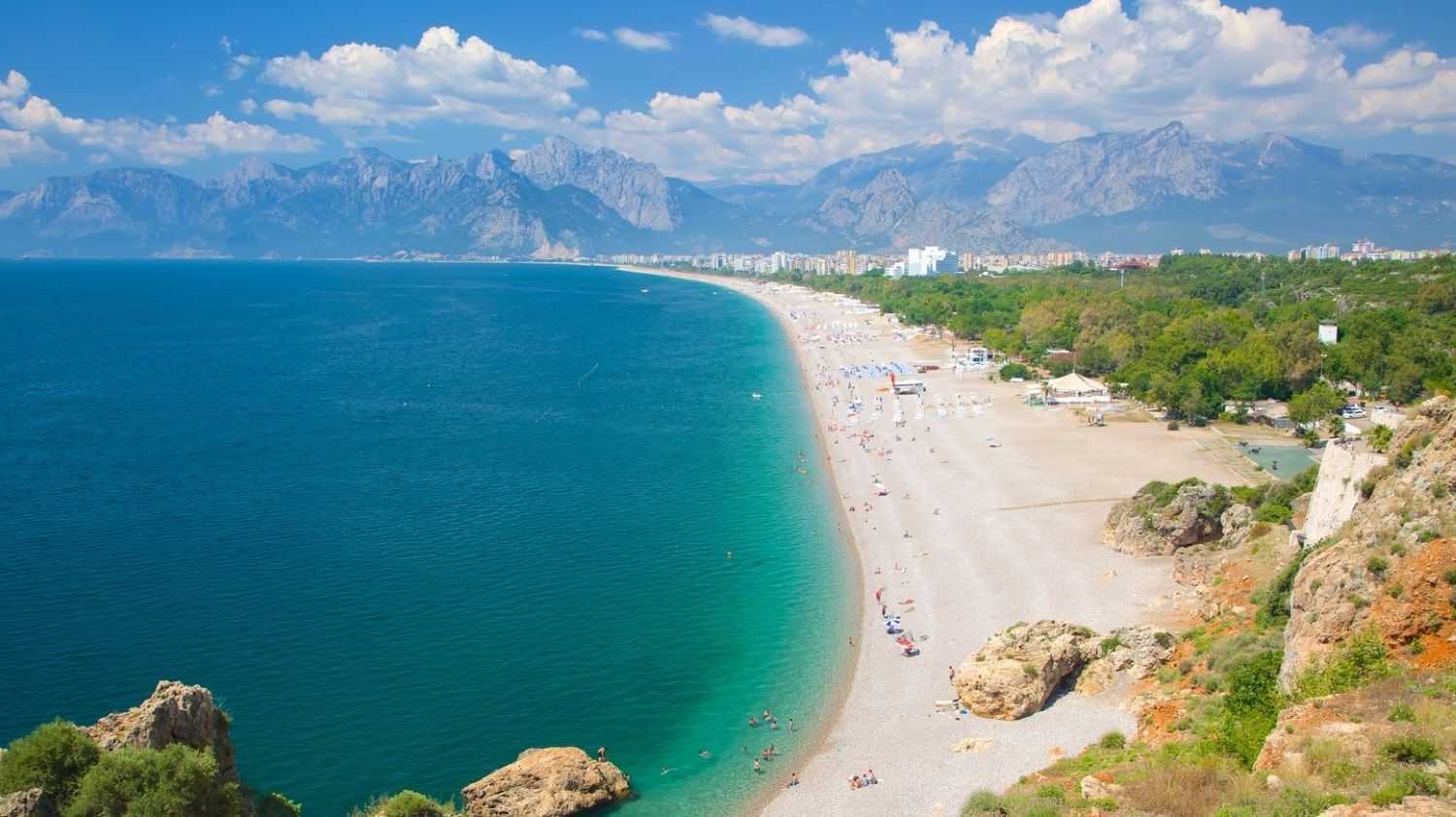 Находится в черте города Анталья. Это один из самых протяженных пляжей – в длину достигает почти 10 километров. Суша покрыта песком с мелкой галькой. На берегу каждое утро убирают мусор. В целом здесь очень красивая природа, живописное побережье, созданы все условия для беззаботного и комфортного отдыха.