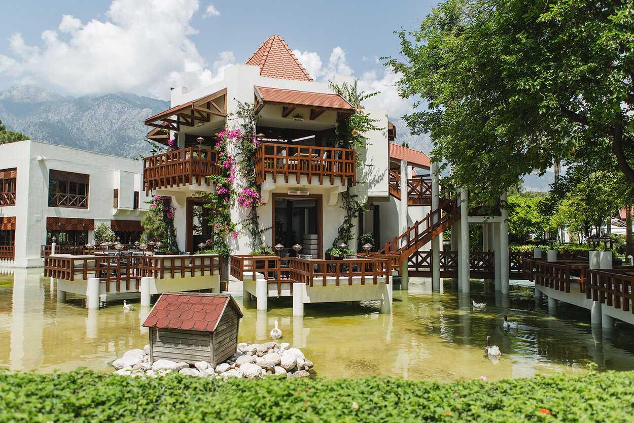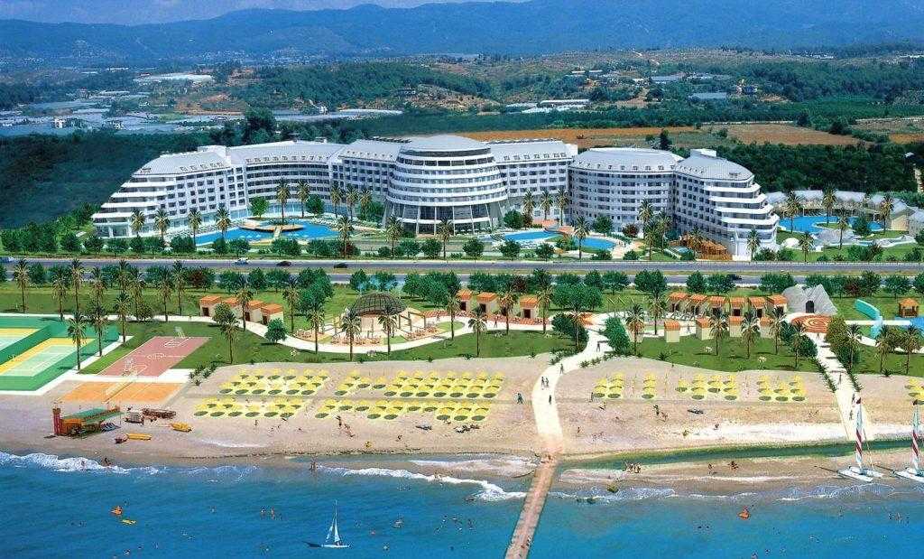 Отель находится в регионе Кемер, в живописном поселке Бельдиби, где горы расположены очень близко к берегу. У него достаточно большая территория — 90 тысяч квадратных метров. Ухоженные участки возле отеля, большое количество растений, много средиземноморских сосен и потрясающий свежий воздух. Он станет отличным вариантом для первой поездки в Турцию с детьми.