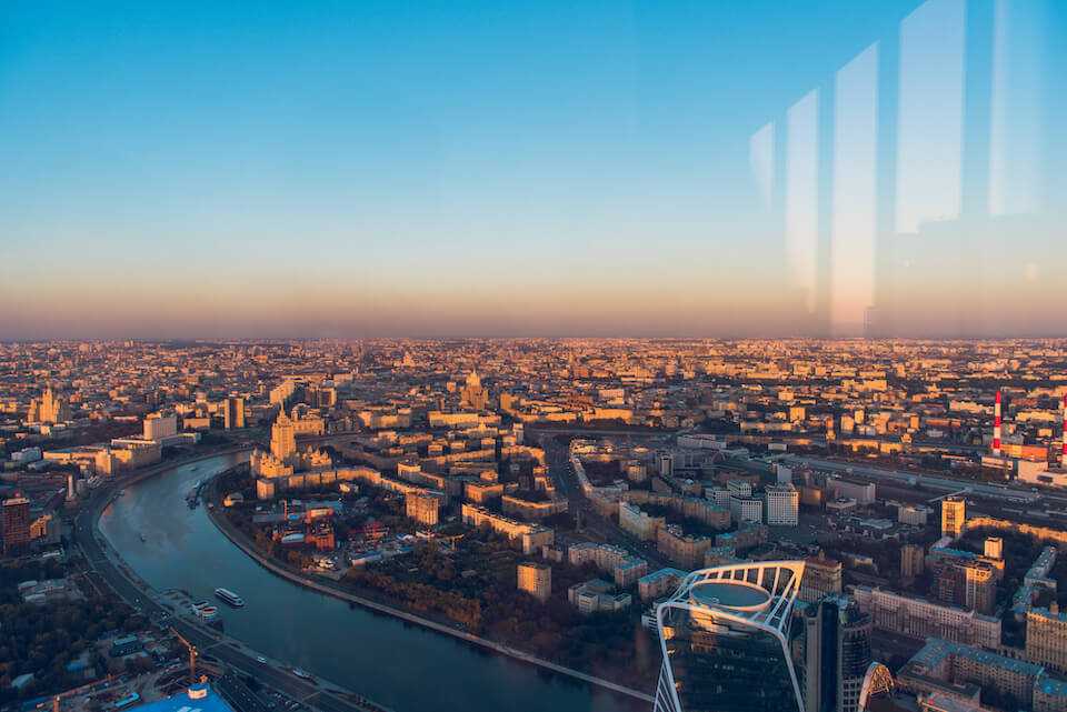 Вид на Екатеринбург с 37-го этажа. В центре фотографии — Храм на Крови, построенный на месте убийства последнего российского императора Николая Второго