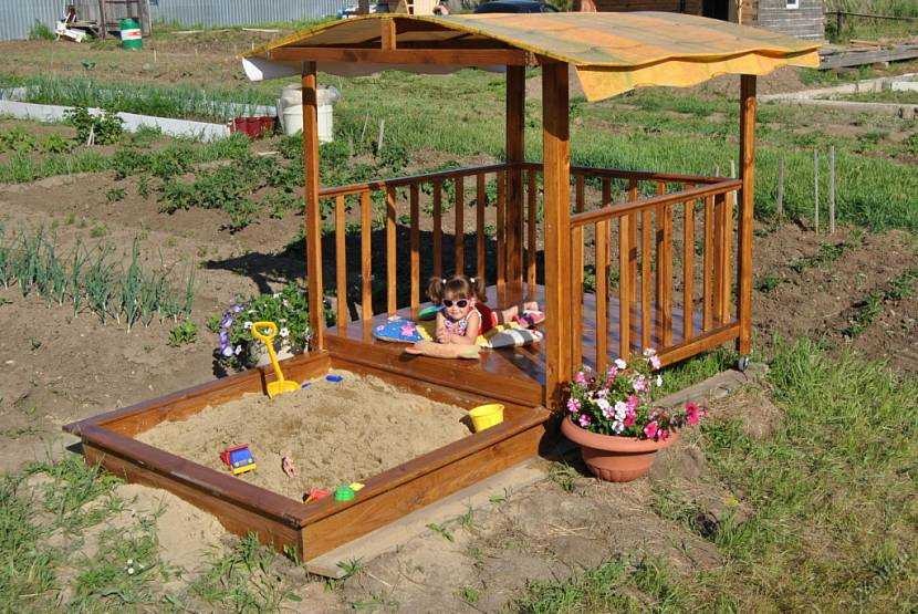 А вот эта песочница лишь частично защищает от солнца и дождя.