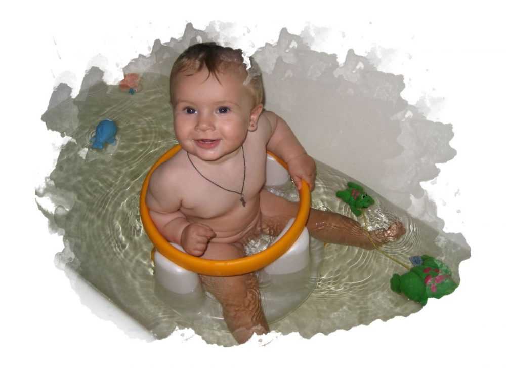 - воду наливают до уровня груди малыша. На некоторых моделях есть отметки, указывающие максимальный уровень воды. Набирайте воду, не превышая рекомендованную высоту;