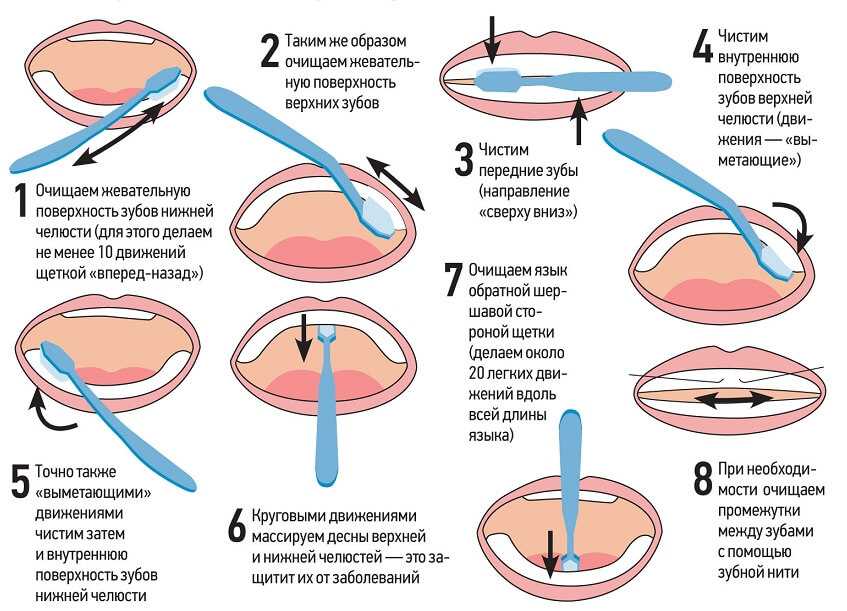 Порядок действий чистки зубов у детей выглядит следующим образом:
