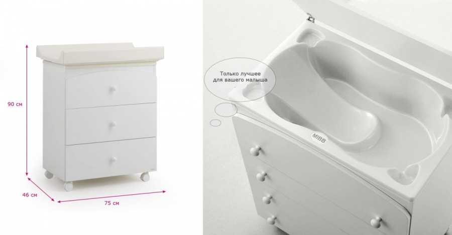 Данная конструкция обладает дополнительной встроенной пеленальной поверхностью. Во время купания малыша она может служить подставкой для всех необходимых предметов и средств для купания: шампунь, мыло, масла, крема и так далее. Это будет удобно и комфортно, поскольку в процессе купания все необходимые вещи будут под рукой. А также данная подставка позволит сразу же после купания вытереть малыша, провести уход, помазать кремами и одеть. И не нужно будет бежать в другую комнату, где из-за перепада температур малыш может быстро замерзнуть.