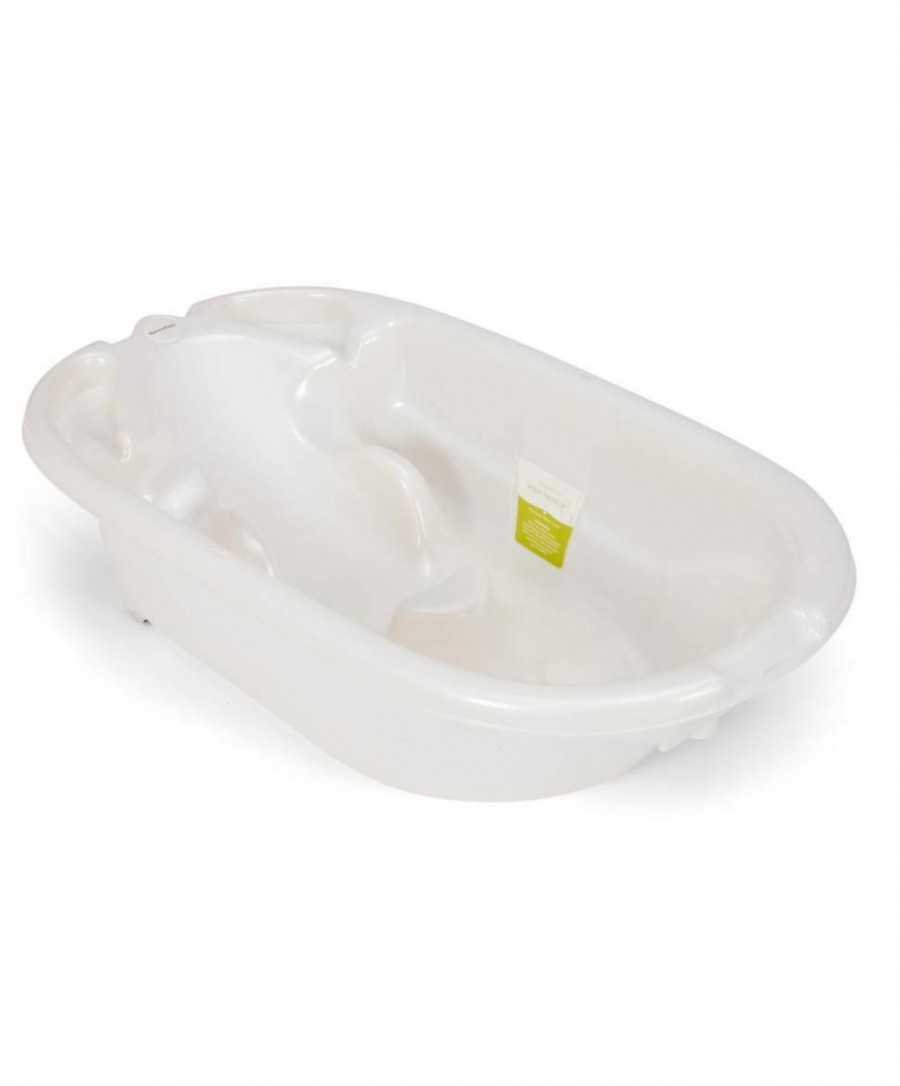 - Ортопедическая детская ванна (ванночка для купания с горкой). Такой тип ванны идет уже со встроенной горкой, поэтому купание ребенка можно проводить одному человеку. Достаточно удобно расположить новорожденного и не переживать о его безопасности. Ее размеры в среднем 70—80 см.