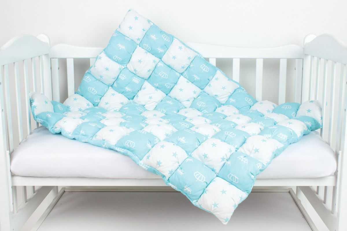 - Одеяло выбирается в зависимости от температуры в квартире. Отдайте предпочтение хлопчатобумажным или байковым одеялам, так как шерсть может вызывать аллергию у ребенка.