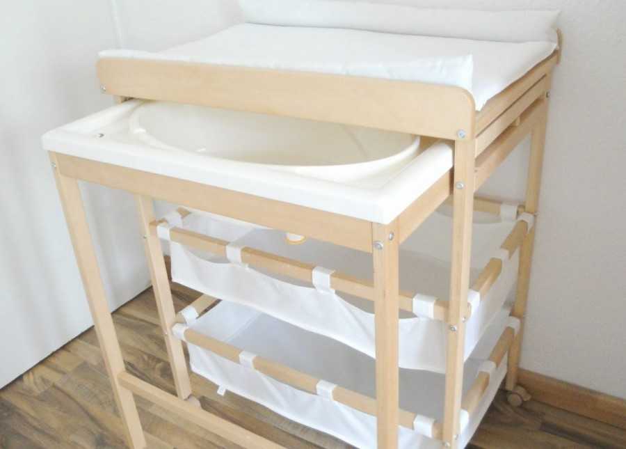 Такой вариант подойдет в том случае, если есть возможность организовать подачу и слив воды к ванне. А в остальном, модели очень удобны тем, что помимо купания, конструкция используется как столик для пеленания детей, для хранения детских косметических средств.